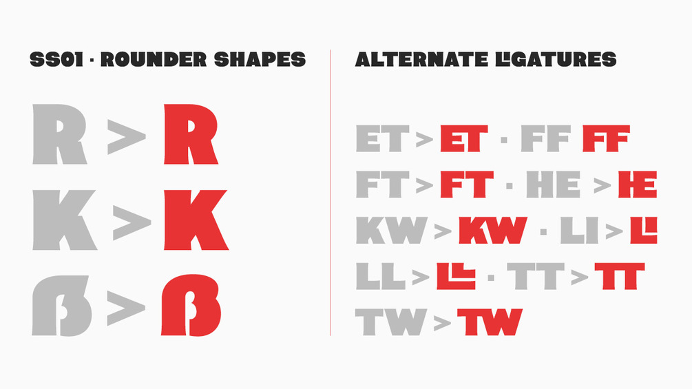 There are inbuilt OpenType features to spice up your designs. With 401 characters, 299 glyphs, and 12 versatile layout features supporting 36 languages, Gomer is the go-to choice for making a bold impact.